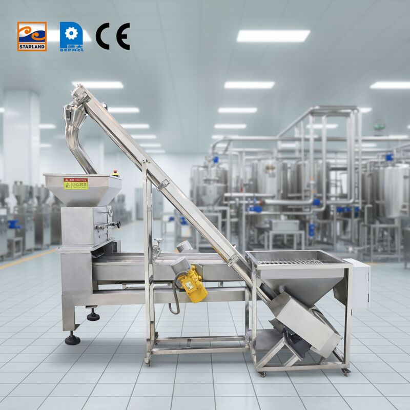 Το μέγεθος του κώνου μπορεί να προσαρμοστεί ανάλογα με τις ανάγκες.η πύλη εκφόρτωσης είναι εξοπλισμένη με ισχυρή μαγνητική πλάκα για την αφαίρεση των ξένων μεταλλικών υλών- Συμπεριλαμβάνεται σπειροειδής μεταφορέας για την ανακύκλωση μεγαλύτερων βάφλων/μπισκότων προς επαναθλίψη.